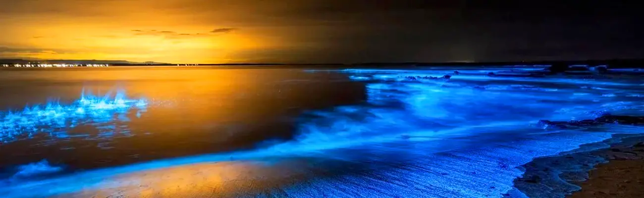 سواحل هنگام و لارک از تماشاییترین نقاط قشم در شب هستند؛ بهویژه در شبهای گرم تابستان و اوایل پاییز که پدیده شگفتانگیز فیتوپلانکتونها ساحل را به صحنهای رؤیایی تبدیل میکند. این میکروارگانیسمهای دریایی هنگام تحریک شدن، نور آبی و سبز درخشان تولید میکنند و نتیجهاش این است که موجها، کف آب و حتی جای قدمها روی ساحل، همچون ذراتی نورانی میدرخشند. این پدیده که به «دریای نورانی» یا Bioluminescence معروف است، یکی از زیباترین جلوههای طبیعی جنوب ایران محسوب میشود.